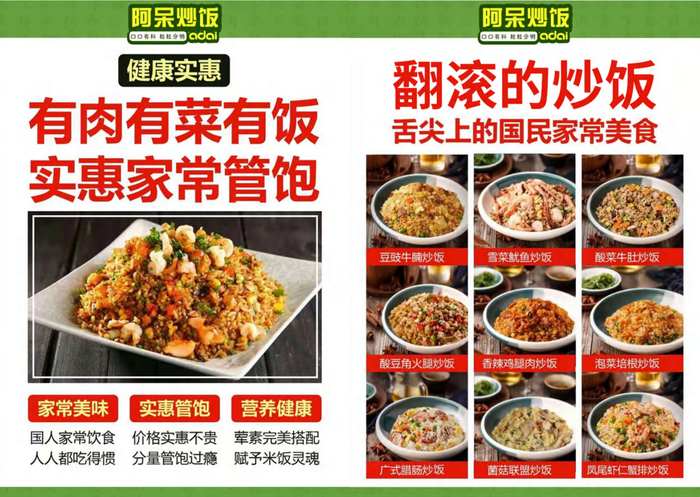阿呆炒菜饭满足人们心理上的需求,使消费者从中获得价值和满足,在别人还未醒悟之前“抢先一步找出消费者潜在的需求”替他们制造出来,抢占商机。阿呆炒饭不仅讲究美味、营养和多样化的口感,更是遵循健康、时尚的理念,带给食客们的不仅仅是炒饭美食,更有不断研发的小吃、饮品、小菜等等,丰富了你的饮食选择。