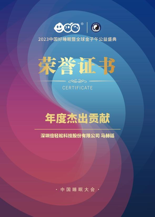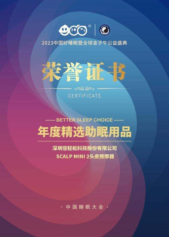 值得一提的是,在此次中国睡眠大会暨第五届全国知晓健康睡眠周上,大会主办方还颁发了2023中国好睡眠暨全球金子午公益榜单,倍轻松Scalp mini 2头皮按摩器荣获了《Better Sleep Choice年度精选助眠用品》,倍轻松董事长马赫廷荣获《年度杰出贡献》奖项,侧面体现出倍轻松以中医科技解决大众睡眠问题的实践获得了多方认可。