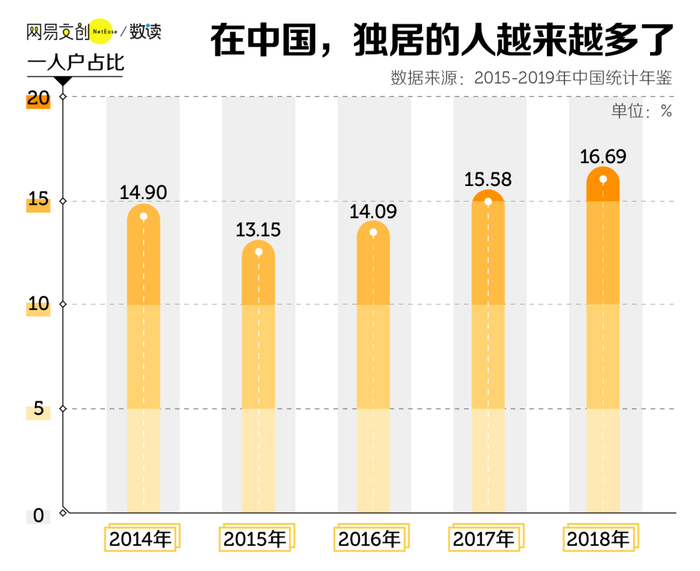 在这些独居家庭里,单身独居青年的数目比空巢老人还多。在大都市,这种情况更加常见。城镇化率越来越高,异地打拼的北漂、南漂越来越多,但都市中人和人的交往空间却在无形中被挤压了。随着一人户的增多,越来越多的年轻人,也往往通过点外卖的方式,来解决一日三餐。