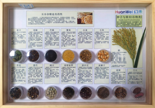 以专业标本为依托,技术手段为辅助,带领学生们认识中草药的草木谷虫四大部。标本是解决教学问题的有力手段,当我们在课堂学习到某一种中草药时,标本用来鉴别、观看学习,为教学提供最直接、可靠、精确直观的实物教学。以草部药材为例,我们可以通过标本了解常见药材如人参的具体形态和生活习性,尤其是野山参,不怕冻不怕旱的特征使其纤维更加明显,尤其不怕野兽的践踏,即使把芦头(芽苞)踩坏也没关系,可以重新发出新芽,继续生长。