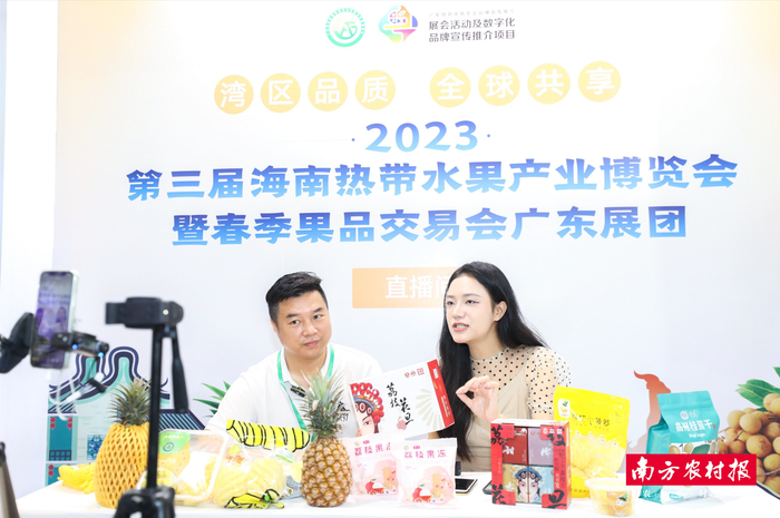 “这款来自徐闻的鲜切小菠萝,开袋即可食用,不仅有着鲜、脆、甜的口感,更是以开袋即食的便捷成为时下年轻人的水果首选,欢迎直播间下单。”为了让更多未能亲临现场的观众一起感受粤字号农产品的魅力,广东展团现场设立直播间现场推介,更有主播开启了逛展现场直播。不仅让展商同时体验到线上线下双重展销的助力,还让直播间的众多观众体会到了整个热博会现场的热闹非凡,镜头里的“粤字号”特色农产品和美食,让不少网友直呼“好想吃”。