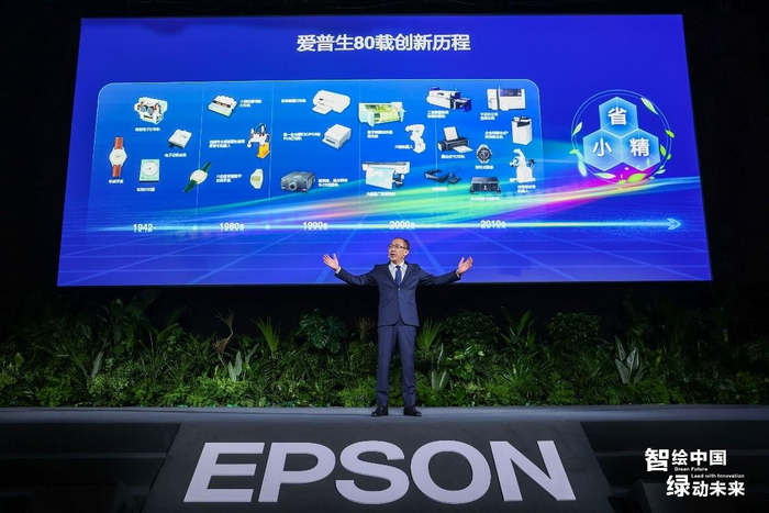 面向未来,以技术创新走进大众生活,用数字创新推动社会进步,爱普生将持续以“省、小、精”理念,积极进行创新实践,持续探索新领域,以绿色动能,深耕中国市场,加强与本地化合作伙伴共创,为中国用户提供更多超越期待的产品和服务,助力实现可持续发展社会,智绘中国,绿动未来。