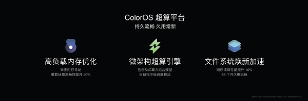 ColorOS 13.1顶级性能调校还体现在从系统底层架构入手,实现业内迄今为止最彻底的安卓底层重构。众所周知,安卓系统在后台开启大量应用时的卡顿始终是个行业难题。除了提供更大的内存以外,基于超算平台的内存基因重组技术,通过“异步内存技术”、“瞬时带宽技术”、“应用预加载技术”这三大法宝,改变安卓底层内存调度的方式,提升内存回收与分配效率,将内存访问速度变为原先的16倍,同时通过AI学习用户的应用使用习惯,在打开应用前就提前完成加载,省去了等待的过程,使得重载场景下的OPPO Find X6系列流畅性提升50%。