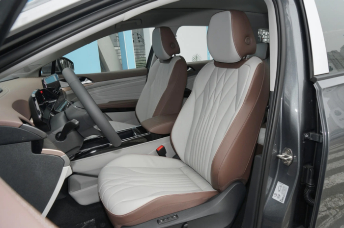 座椅方面同样采用了拼色设计,配合真皮包覆,座椅面料进行了缝线处理,体现其高级与豪华感。