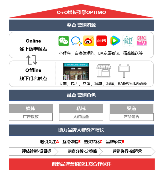 OPTIMO品牌创新增长中心,是屈臣氏基于O+O生态升级的综合平台,整合了线下、线上的营销资源,融合媒体、私域、渠道多种角色,是数字时代品牌提升顾客体验、建设私域的优质生态伙伴。