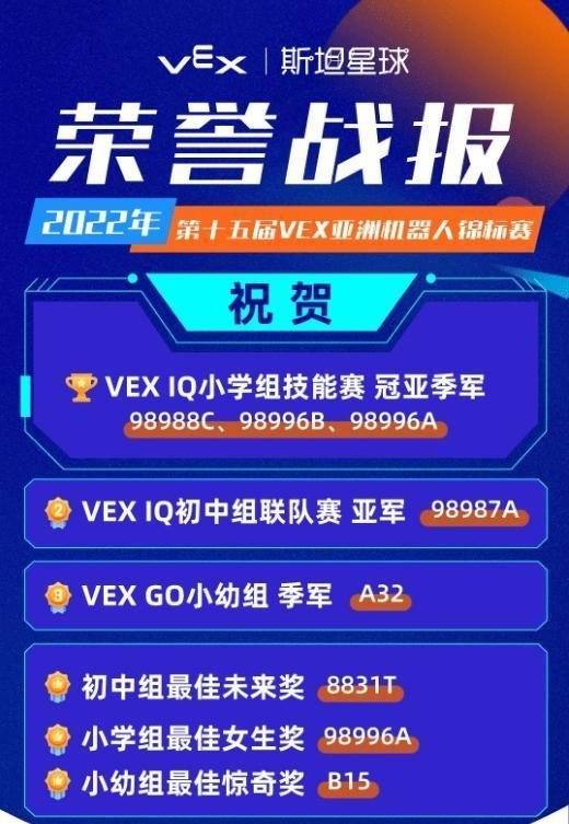 亚洲之光,载誉而归!VEX亚洲机器人锦标赛,斯坦星球学员澳门赛场再度斩获冠亚季军!