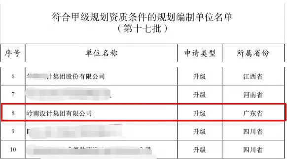 岭南股份旗下岭南设计集团晋升城乡规划编制甲级资质