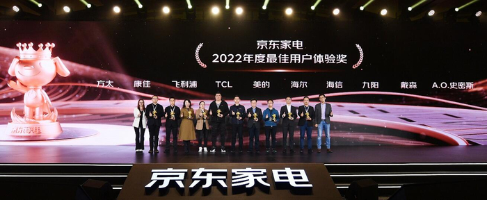 为带给消费者更贴心的家电焕新服务,3月21日,京东家电举办了以“初心如磐 春归有期”为主题的合作伙伴大会,并为海尔、美的、TCL、海信、飞利浦、九阳、康佳、戴森、方太、A.O.史密斯等十家品牌颁发了“最佳用户体验奖”。