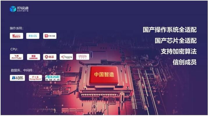同时,好视通作为行业首批信创成员单位,积极响应国产化战略,不断加大研发投入,推进国产化云视频加速落地。早在2019年,好视通就开始布局国产化生态联盟,与信创国产化核心厂商完成产品兼容适配认证、相互开展生态合作。率先发布了基于国产芯片、国产操作系统、国密算法的国产化云视频解决方案,具备平台处理能力、架构级安全体系、多网多端、超大并发、用管分离、自动化运维等领先优势。
