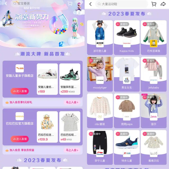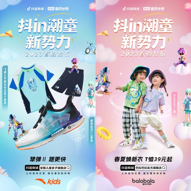 为助力亲子生活行业商家在春夏上新之际精准把握消费趋势,抓住用户换季消费心智,抖音电商于3月21日-4月3日期间上线“抖in宝贝计划·潮童新势力”活动,覆盖亲子春夏服饰、亲子出行、图书教育等不同类目,同时联动安踏儿童、巴拉巴拉等14家知名品牌,率先发布春夏亲子新品,全方位满足亲子购物需求。
