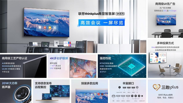 联想中国区中小企业客户业务群thinkplus事业部总经理刘嘉表示,为了深度解决会议室场景下的用户需求,联想thinkplus打造了以会议平板为核心,软件、服务和平台一体化的智能场景方案,助力企业高效决策。