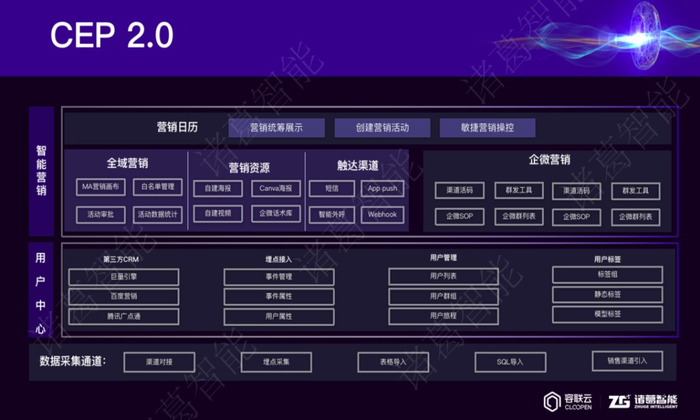 对此,诸葛智能进一步升级推出诸葛CEP 2.0平台,为企业提供智能营销全场景解决方案,包括全域营销服务、营销资源整合、触达渠道全覆盖等,对用户互动进行全面涵盖和支撑。通过四大平台能力,实现把每一个可触达的用户都纳入营销体系,持续性运营转化。