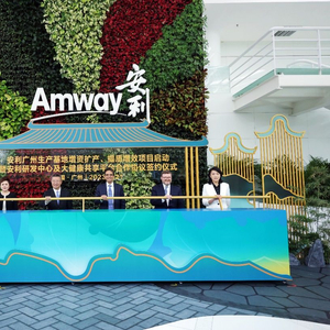 潘睦邻介绍,安利是一家在全球100多个国家和地区开展业务的跨国企业,安利广州生产基地是安利设在美国海外的最大生产基地,1995年投入生产运营,扎根中国28年,共经历了9次增资扩产,现生产营养保健食品、美容化妆品、个人护理用品、家居护理用品及家居科技产品等400多款产品,产值占到安利全球的45%,辐射支持48个安利海外市场,安利(中国)连续20年位列安利全球最大市场,同时也是安利全球战略创新的领头羊。