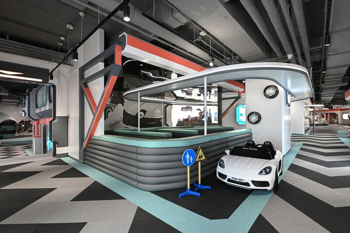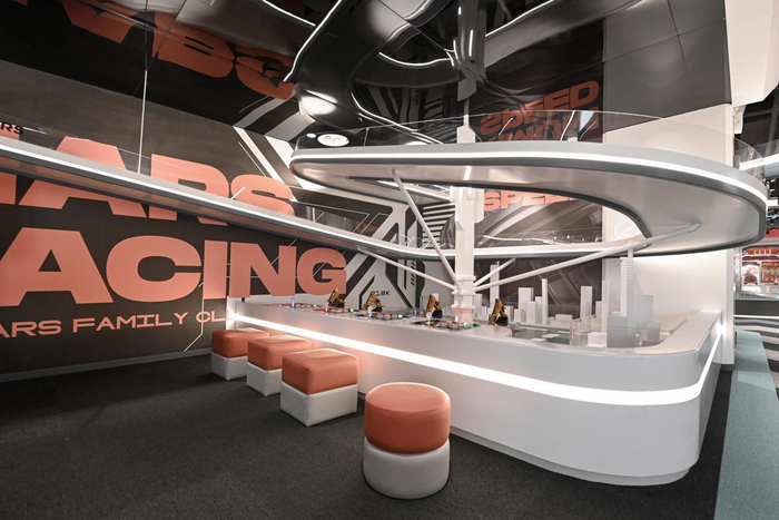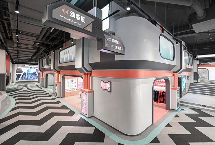 从游玩场景来看,门店主题设置为“漂浮城市”,运用太空站、虚拟ID、VR及AR游玩项目的巧妙融合,模拟孩子们在太空中遨游、探险的故事模式,并充分考虑儿童和成人的使用差异,不同项目之间进行衔接性与色彩搭配,将酷炫态度认真传达,兼具颜值和实用。