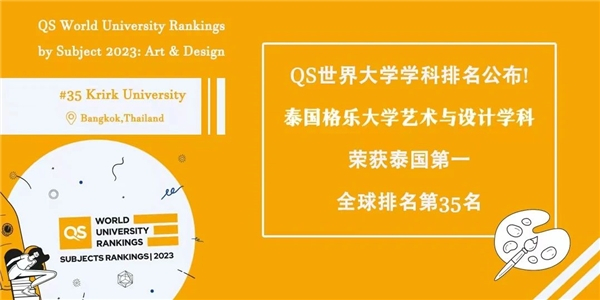 2023年3月22日,国际高等教育研究机构QS Quacquarelli Symonds于发布了2023年QS世界大学学科排名。泰国格乐大学艺术与设计学科,荣获泰国排名第一名,亚洲排名第七名,全球排名第35名 !