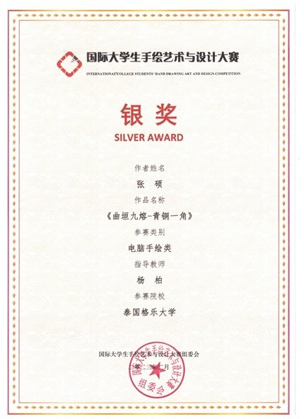 泰国格乐大学艺术系拥有众多优秀学子,他们积极参与国际大赛并屡获佳绩,比如艺术系学生张硕,获得国际大学生手绘艺术与设计大赛银奖。