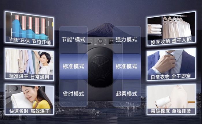 第三代双转子变频压缩机 智控轻柔烘干不伤衣物