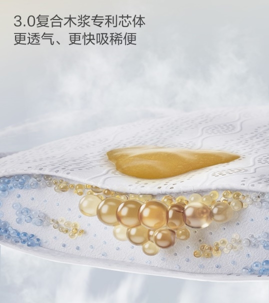 看似简单的一片纸尿裤产品,背后是芯体、透气底层、腰围等多个维度的整合呈现。如一片纸尿裤中,最核心的功能组件是芯体。区别于传统的高分子芯体与木浆芯体,Babycare为新生儿纸尿裤匹配的,是结合进口木浆和高分子材料的3. 0芯体,兼具了吸水性和透气性优点。
