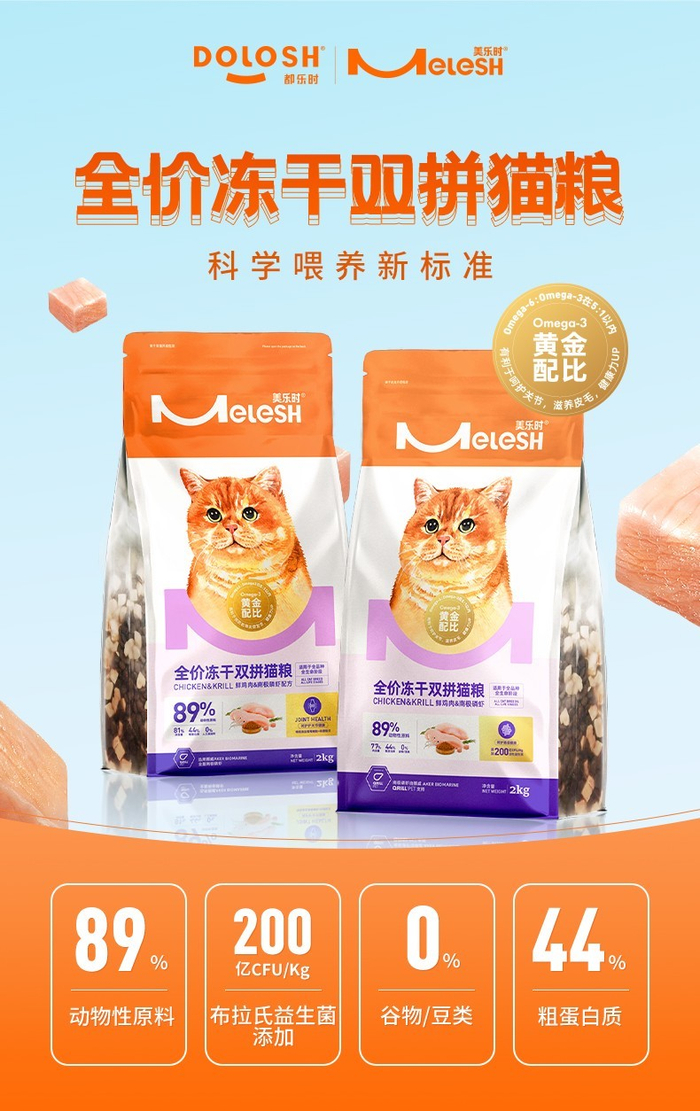 都乐时Dolosh品牌迎来新成员—— 美乐时Melesh全价冻干双拼猫粮首发上市!
