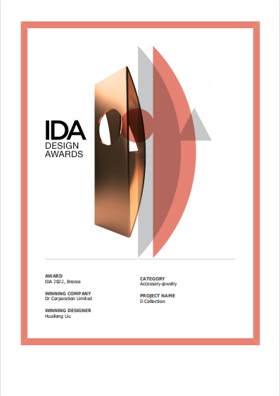 美国IDA国际设计奖,作为全球最具权威的国际设计大奖之一,也是设计界最受尊敬的设计奖之一,是世界各大知名设计奖项的“风向标”,对来自全球专业级的作品,评选条件十分严格,为时尚设计领域重要的奖项。DR的双层锁扣设计,于2022年斩获铜奖。