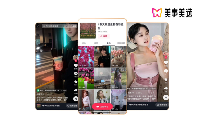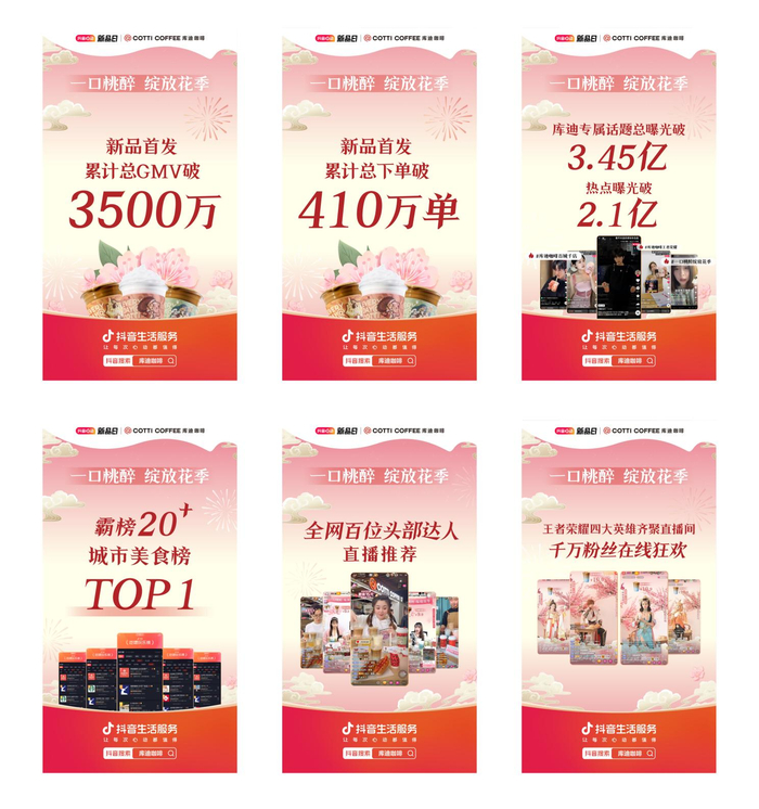 同时,美事美选还为库迪策划上线#春天的温柔都在粉色里,3月10日起发酵,一周内曝光量破2亿,为全网2亿用户种下新品“桃醉系列”的草。更有弓弓沐梓、孙宁伽nicole 、熊美眉、小泽弟弟 、聂冶川、赵辰宇等10余位高热网红,纷纷为库迪咖啡创作专属热点视频内容,全网短视频揽获3.4亿播放。