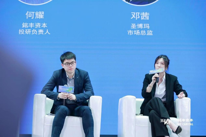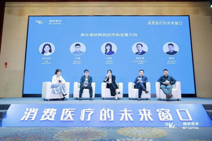 圣博玛医美事业部市场总监Sunny作为产业方代表受邀参加此次峰会,并与銘丰资本投研负责人何耀、美柏生物联合创始人魏强、远洋资本股权投资中心董事总经理魏施寒、36氪顿雨婷等各界代表在“关于再生类材料如何应用在消费医疗领域以及其发展方向”方面进行深入探讨。