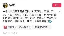 从农村少年,到头部网红,再到民营企业家,小杨哥在家人的陪伴和支持下一直默默前行。他曾在直播中说:“我今天有的一切,都是你们(粉丝)给我的,所以我一定会代表你们,多做些对社会有益的事。”不论是疫情捐物还是抗震救灾,小杨哥一直身体力行,贯彻自己许下的承诺,希望他能不忘初心,继续带给大家好的作品。