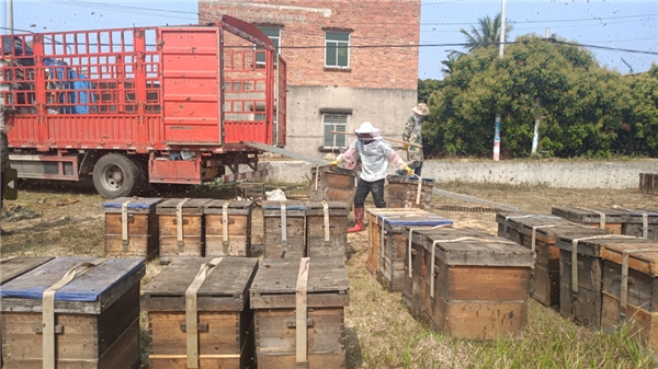 为了帮蜂农高效率完成转场(蜂农从一个地方转移到另一个地方),他着实下足了工夫。2月底,他与合作社几个成员一起,去附近村镇的荔枝园考察了一遍。他主要关注几个问题:有没有养蜂的场所,荔枝花开的情况如何,最佳的“流蜜期”是什么时候,蜜源是否充足安全。“解决了这些问题,我再和蜂友沟通转场的时间。”
