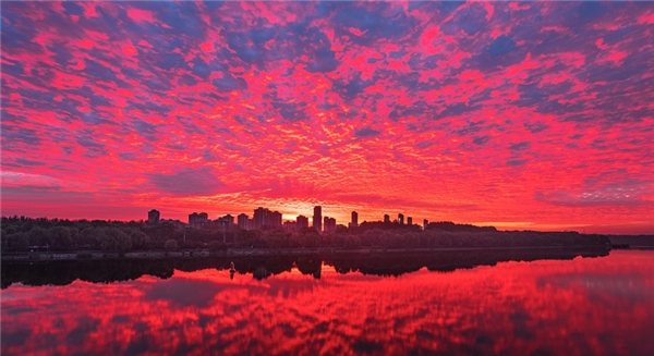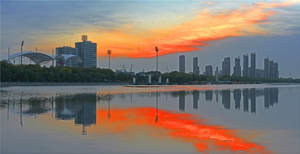 作品简介:大运河在满天朝霞的映衬下,岸边的城市拔地而起,分外妖娆。