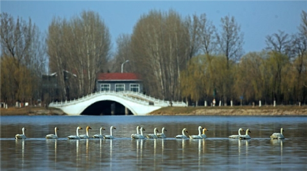 作品简介:16只天鹅齐聚大运河城市副中心段,是副中心优良的生态环境引来的天鹅群的回归。