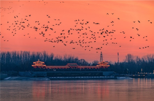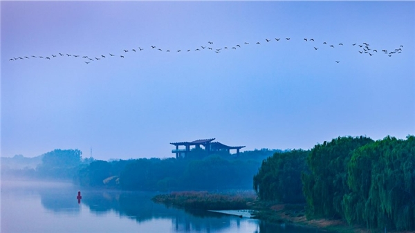 作品简介:如今的运河水清岸绿,已成为水鸟的家园,成群的野鸭在运河上空飞翔。