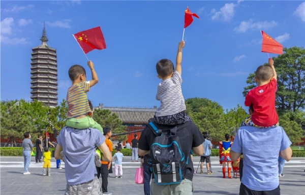 作品简介:孩子是幸福的,有坚强的肩膀作为依靠,更有美好前程以希冀。父亲背着的是孩子,更是希望和种子;孩子举着的是国旗,更是力量和信仰。