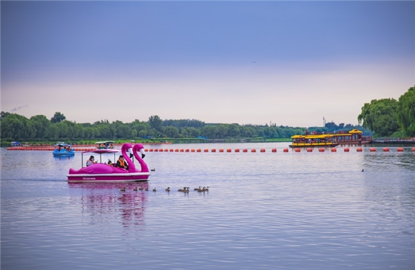 作品简介:貌似鸭子的游船上,一家人正在享受游船带来的欢乐,几只野鸭也加入游船行列,分享人与自然和谐共生带来的欢乐。