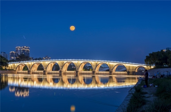 作品简介:2022年的超级大月亮从运河源头第一桥冉冉升起。