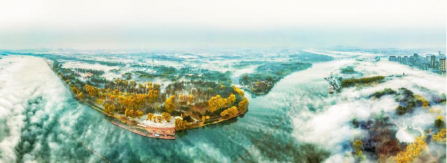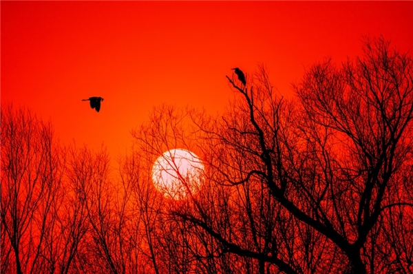 作品简介:夕阳西下百鸟归巢,河心岛成为禽鸟的温暖之家。