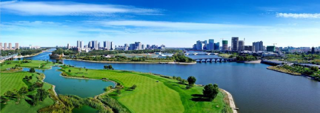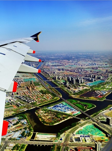 作品简介:从高层俯瞰蓝天白云下的运河五河交汇处,蓝天碧水绿地组成了美丽画卷。