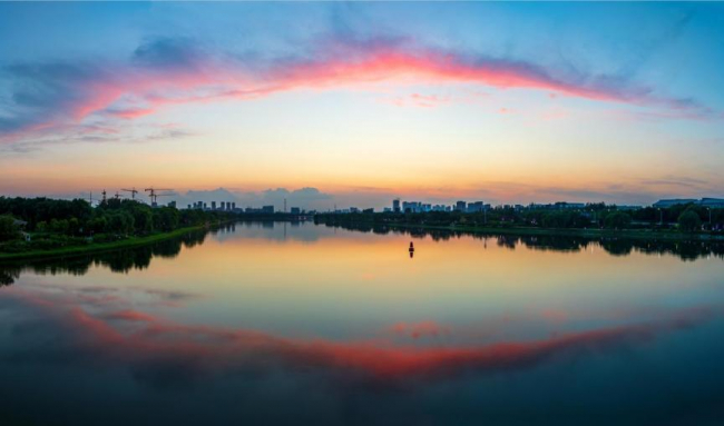 作品简介:秋日的清晨,一道唯美的霞光倒映在运河碧波荡漾的河面上,对称之美体现得淋漓尽致。