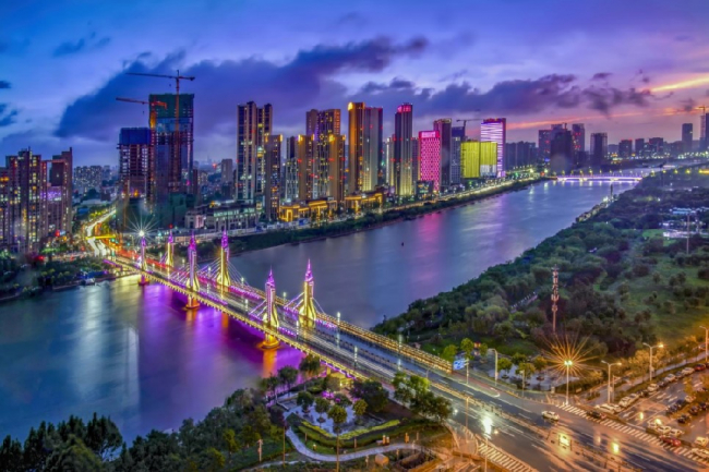 作品简介:大桥造型别致,多彩灯光不断变换,那流光溢彩,交相辉映,簇簇璀璨的夜景,确实令人心动。