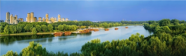 作品简介:游船荡漾碧连天,漕运码头几变迁;森林公园观玉柳,水城共融美若仙。