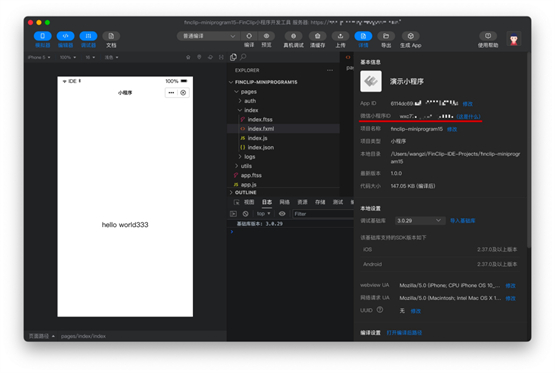 随后,使用 FinClip 开发者工具打开对应小程序,在确认小程序代码开发无误后,可以点击 IDE 界面中的「上传」按钮,并勾选下方的「小程序同步上传至微信」复选框。
