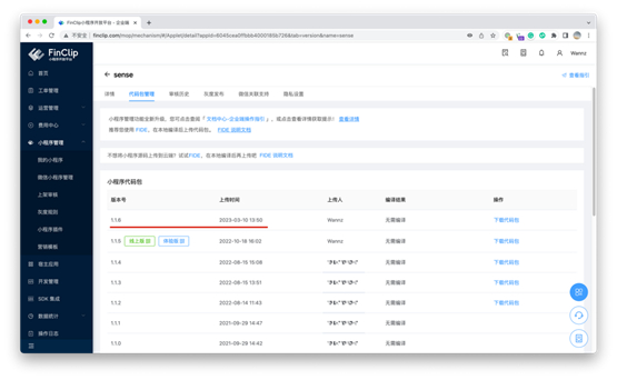 当然,这个功能并不能跳过微信对小程序代码的审核与检查。在 FinClip 产品中对微信小程序进行代码提审与发布依然会遇到「审核与发布的时效性限制」。