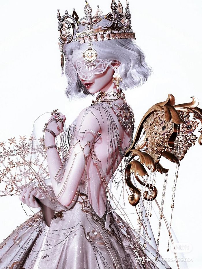 “唯有权力和黄金最动人心”,配饰多而不乱神秘危险的黄金女王,被面纱遮去真容也一样能slay全场。