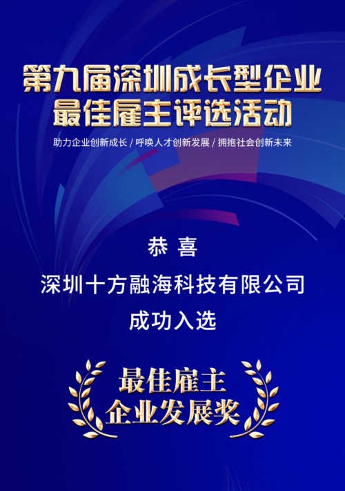 3月15日,第九届深圳成长型企业“最佳雇主”评选活动最终结果公布,经过为期九个月专业、审慎、公正的企业评审工作,共计33家获奖企业及11家提名企业。其中,十方融海荣誉上榜“最佳雇主-企业发展奖”名单。