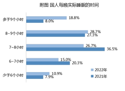 在刚刚过去不久的睡眠日中,睡眠问题重新成为了社会讨论的热门话题,根据社科院社会学所发布的《中国睡眠研究报告2023》报告指出,2022年人们每晚平均睡眠时长为7.37小时,比2021年的7.06小时有明显增加,但是睡眠时长低于7个小时的人群仍占较大比例,25.9%的民众每晚平均睡眠时长不足7个小时。