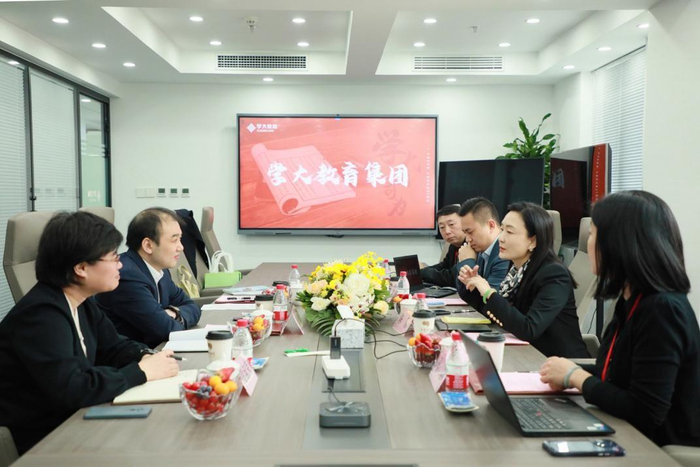 在交流会伊始,学大教育集团相关负责人首先向调研组汇报了学大教育集团近年来在助力教育文化产业发展方面所做出的成绩以及集团各项业务发展情况,特别是在职业教育、文化服务等领域,学大教育积极响应国家政策导向,依托多年积淀的办学和运营管理经验、遍布全国的服务网点、优秀的教师团队、扎实的教研能力、领先的教育数字化技术等优势,全面构建了教育及文化产业集团的多元化发展格局。