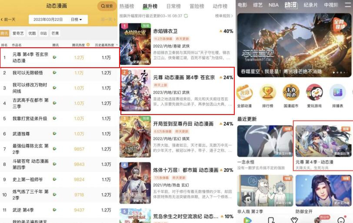 中国知名网络文学作家天蚕土豆扛鼎之作《元尊》动态漫第四季已于2023年3月15日正式上线。开播后不久,就荣登腾讯视频日榜热度第1,爱奇艺动漫飙升榜上第2,相信在新的一季中,会有更多年轻新观众通过《元尊》加深对土豆世界观的印象,二次带动小说及其他改编作品的热度。