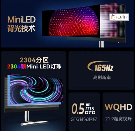 泰坦军团M34E7R这款34英寸、21:9带鱼屏的曲面MiniLED显示器,则提供了165Hz的高刷新率,其MIniLED背光分区更是高达2304个,实现了一灯珠一分区的高端控光技术。高达0.5ms的GTG背光响应时间也为玩家带来了超级优秀的画面拖影控制能力。显示器还支持HDR 1000,能让玩家享受到非常惊艳的高亮度画面效果。同样的,这款显示器出厂前也均逐台校色,色差≤2,色彩更加精准。