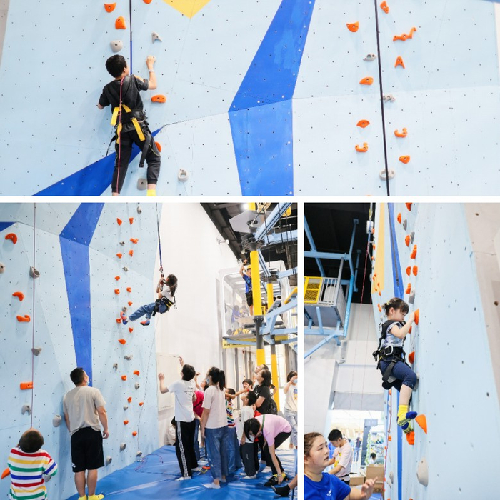 竞技攀岩:让孩子在一个安全的仿真攀岩环境中,既能体验攀登的快感,又能全方位锻炼大脑和身体平衡。