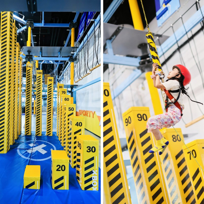 弯道飞索:XBOX家庭运动中心才有的室内28米超长弯道,让孩子变身“空中飞人”,体验在空中飞梭的新奇感受。