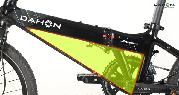 马甲线,使用"马甲线",车架形成三角形结构,增加车辆稳定性;纵向刚性提高10%-15%,骑行时车架刚性十足,蹬车的力,有效的转为推进力,减少能量损耗,比部分公路车、山地车和非三角形车骑乘效率更高。